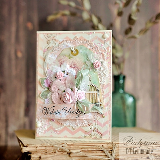 Witajcie. Wracam po kilku dniach nieobecności spowodowanej chorobą. Coś się przypałętało i położyło mnie do łóżka na kilka dni ... Dziś chciałam, by było romantycznie i niekoniecznie retro. Do wykonania pracy wybrałam kolor różowy oraz delikatną zieleń.