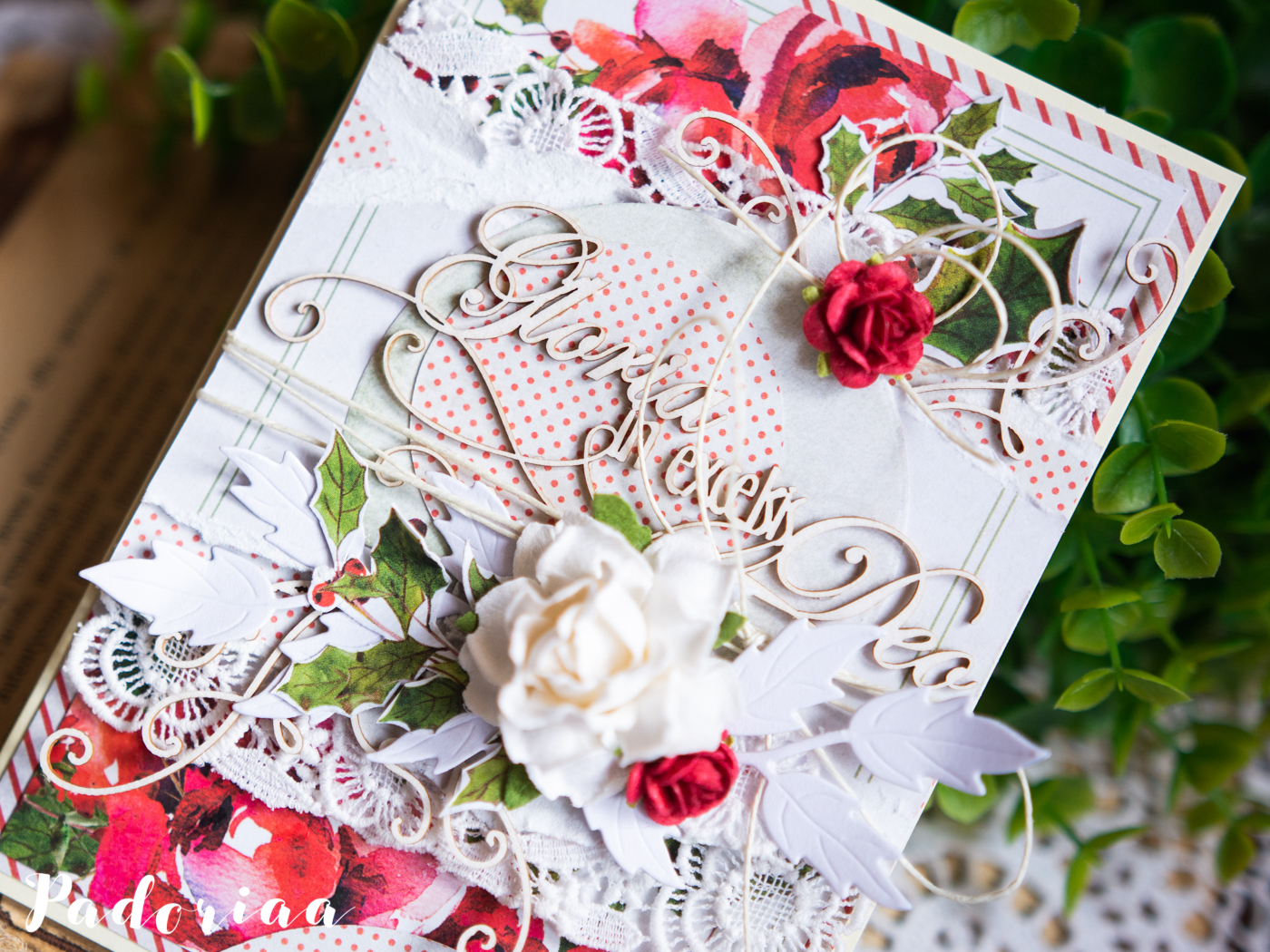 Cześć. Dziś dla Rosy Owl przygotowałam kartkę w klimacie świątecznym. Papier z kolekcji "Rosy Cosy Christmas"od Piątku Trzynastego w połączeniu z wykrojnikiem listki nr 5 prezentuje się niesamowicie. Powstała klasyczna, dość delikatna kartka - spójrzcie :